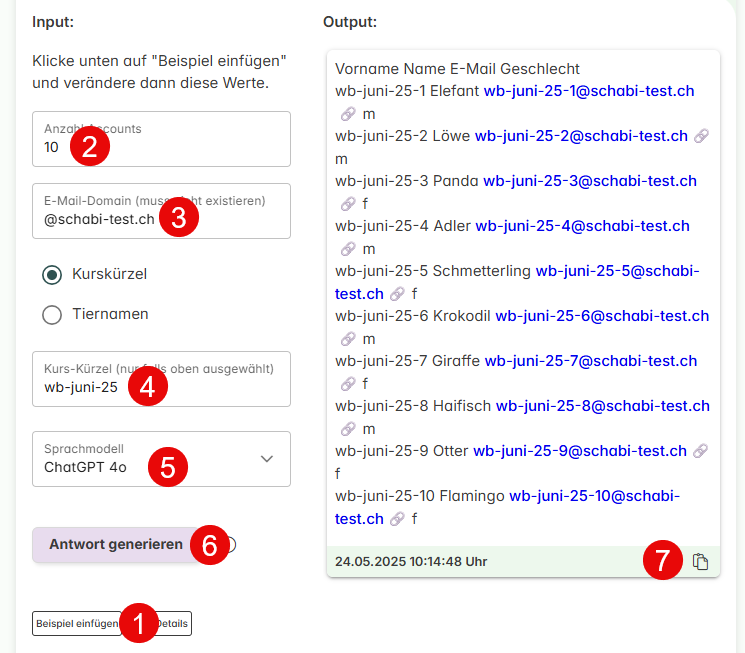 P.S. Es gibt auch einen Genrator für Schüler:innen-Accounts: https://web.schabi.ch/tools/ki/prompt/40ad7062-8bcc-4360-d5be-08dd8c93996c